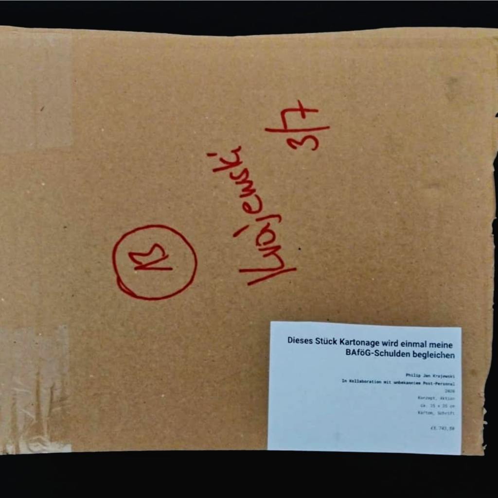 Zum Karton ein Kurzer abriss über die Farce, warum ich mit Bildung und Benachteiligungen Bafög-berechtigt wäre, ohne nicht studieren kann, durch Lücken im System falle, kein Bafög bekommen kann, entsprechend keinen Abschluss habe und trotzdem Schulden gemacht habe.