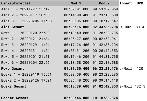 Kassenbonkomposition Nr. 1 op. 2 €-moll: 2h 8m 46s