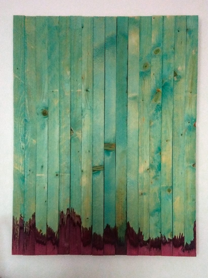 Die Arbeit materialisiert diesen Widerspruch. Die Oberfläche besteht aus Fichtenholz – einer Baumart, die aus ökonomischen Gründen großflächig in Monokulturen gepflanzt wurde. Das Grün ist kein lebendiges Wachstum, sondern Holzschutzmittel. Das Rot stammt aus Hagebuttentee. Tannenduftöl evoziert die Atmosphäre eines intakten Waldes. Die Installation simuliert Natur und legt zugleich ihre Verwaltung und Künstlichkeit offen.